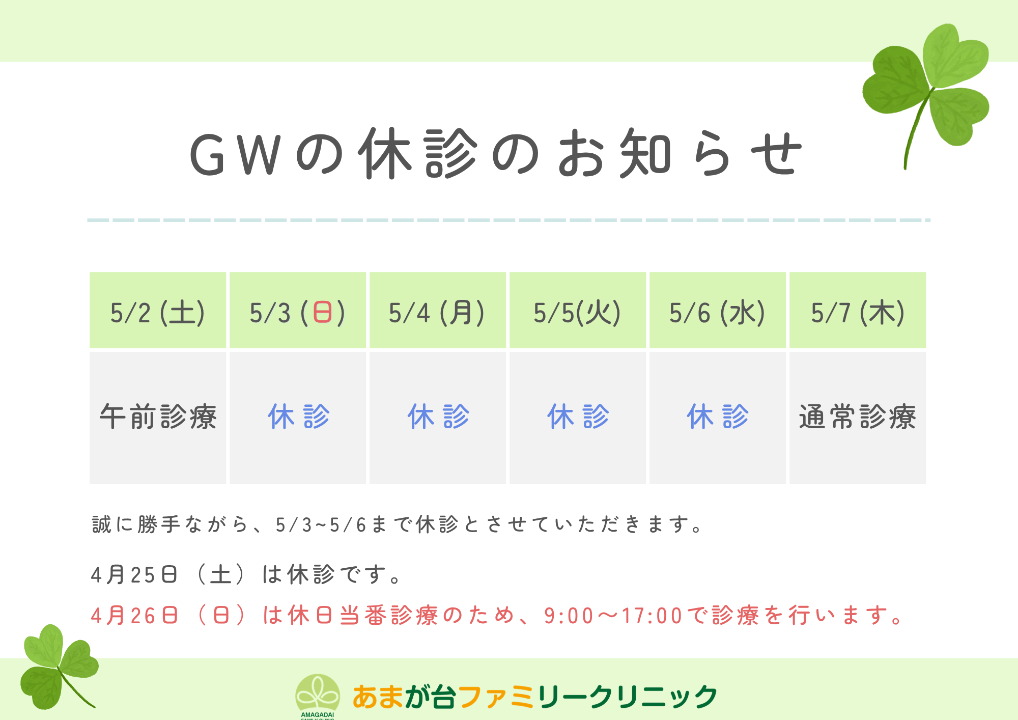 なお、勉強会、医師会出席などの都合によって当日受診ができない場合もあります。