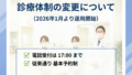 クリニックからのお知らせ 2025.12.28 🏥 クリニックに来院して受診 内科・糖尿病・小児科・皮膚科・健診など (いつものネット予約はこちら) 来院予約(対面)はこちら 📱 オンライン診療・遠隔再診 スマホ・PCのビデオ通話で受診します。 ※「CLINICS」アプリ等の登録が必要です。 肥満治療 (オンライン再診) 睡眠時無呼吸 (オンライン初診) いびき・無呼吸 (検査結果説明) オンラインCPAP (再診)