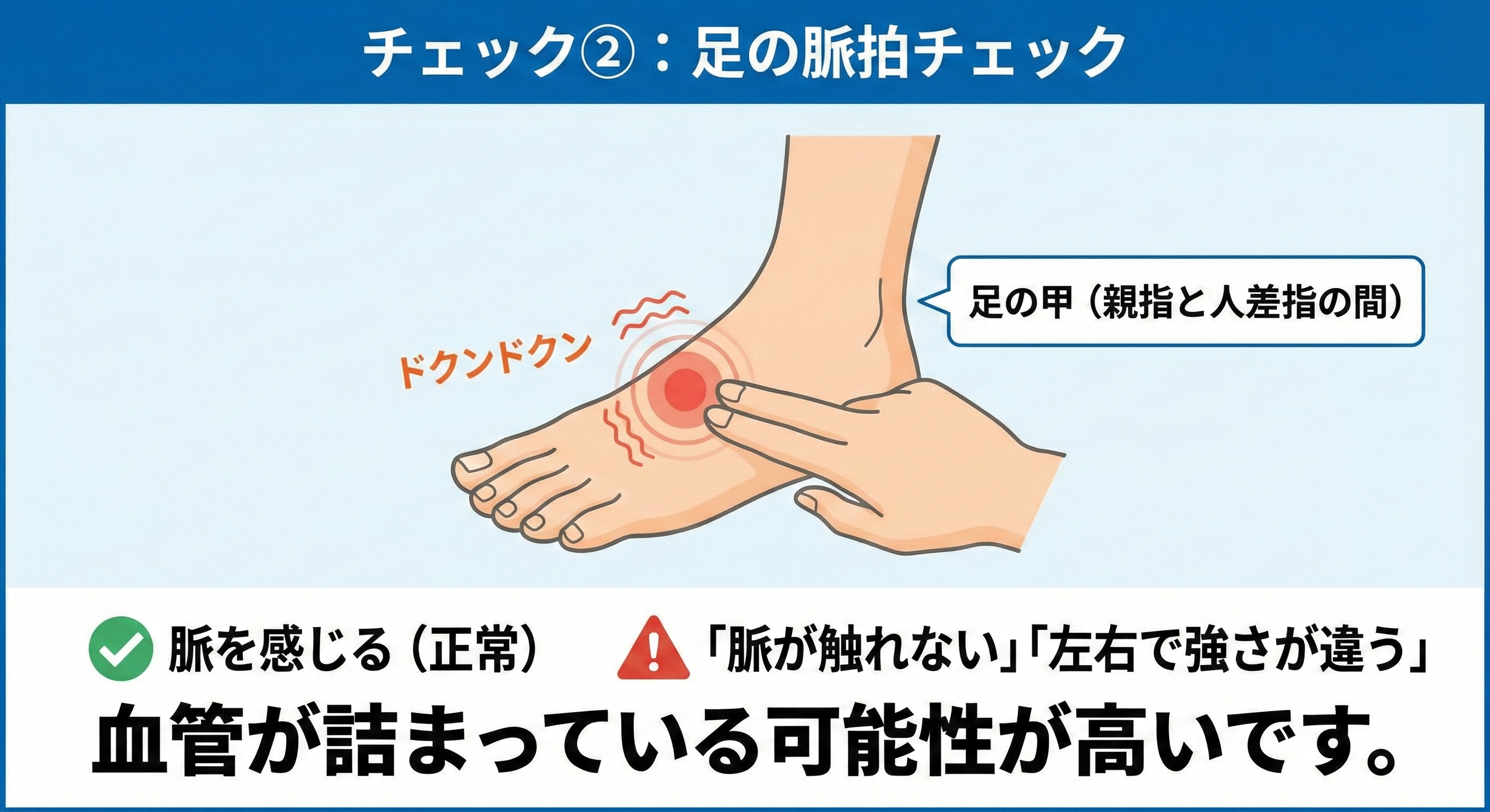 チェック②:足の脈拍チェック
