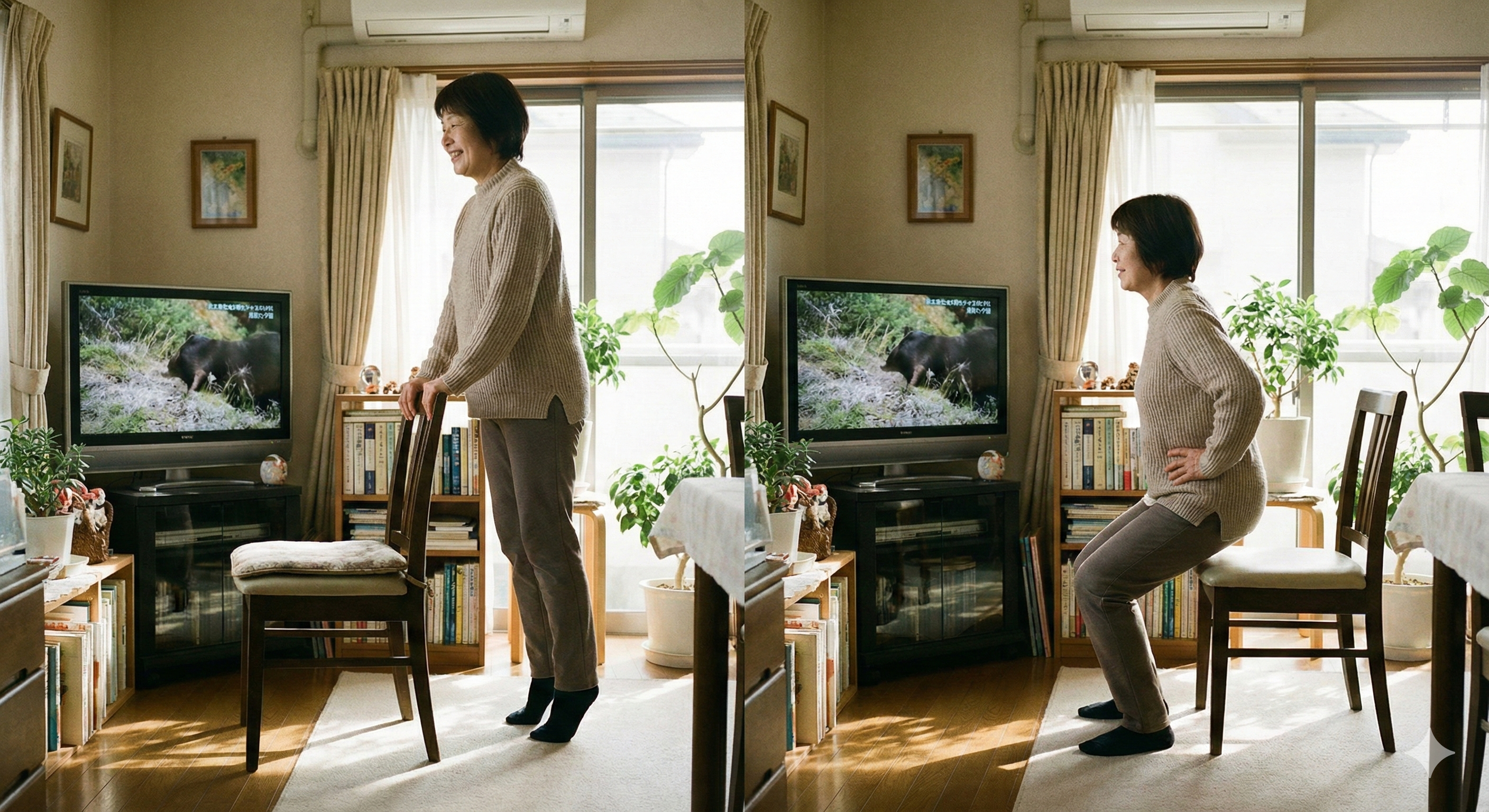 テレビを見ながらの「かかと上げ運動」(1日20回×3セット)や、椅子に座って行う「軽いスクワット」で、ふくらはぎのポンプ機能を復活させましょう。