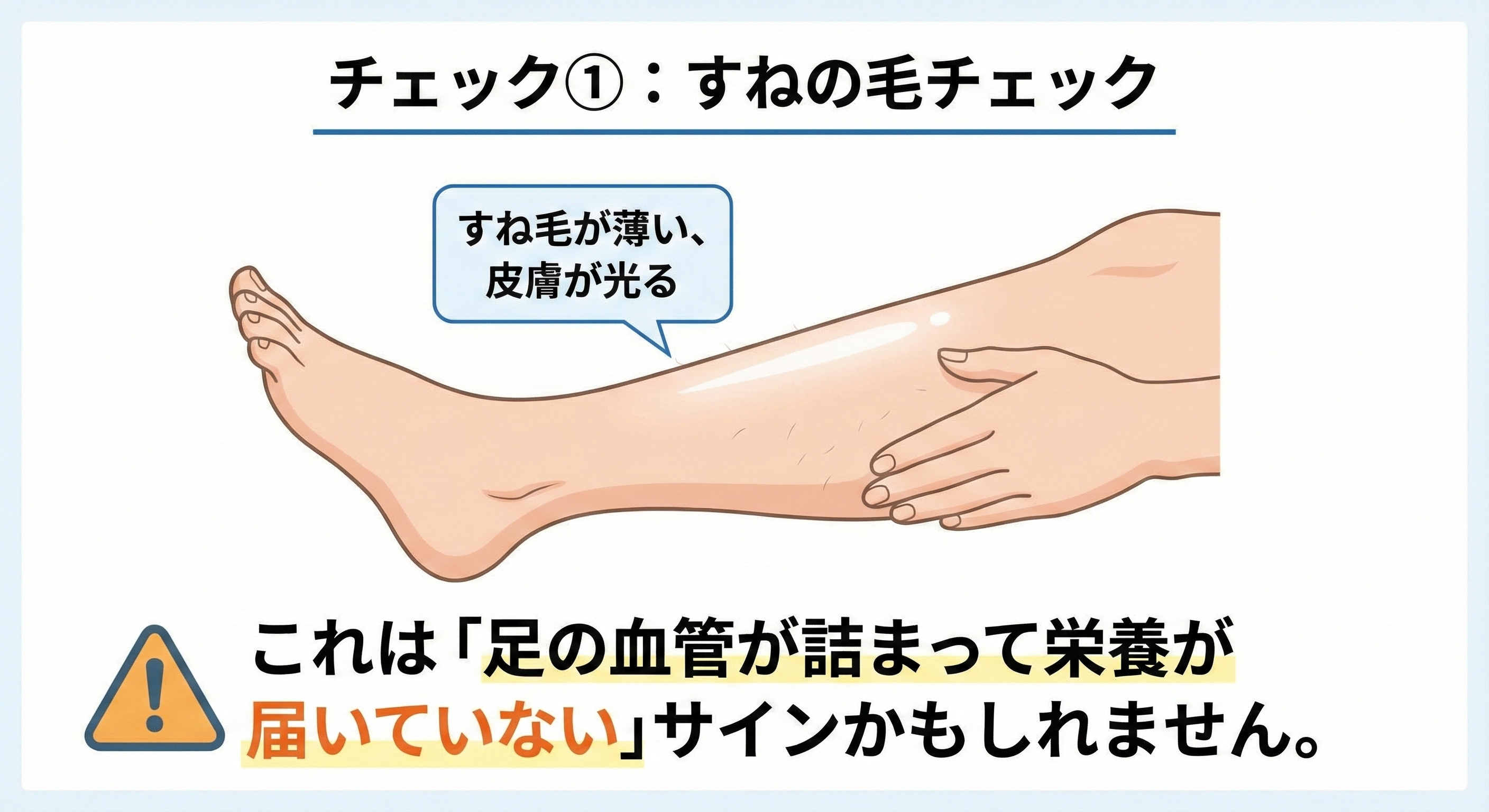 足の「すね」を見てください。すね毛が薄くなっていたり、皮膚がテカテカ光っていたりしませんか?