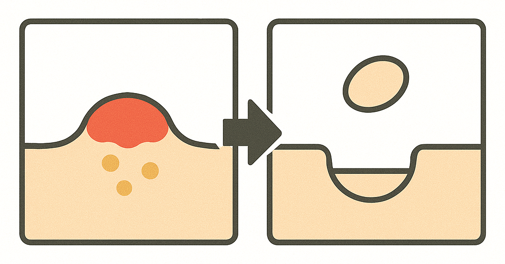 • 赤く腫れて熱を持つ → 炎症を起こした粉瘤の可能性