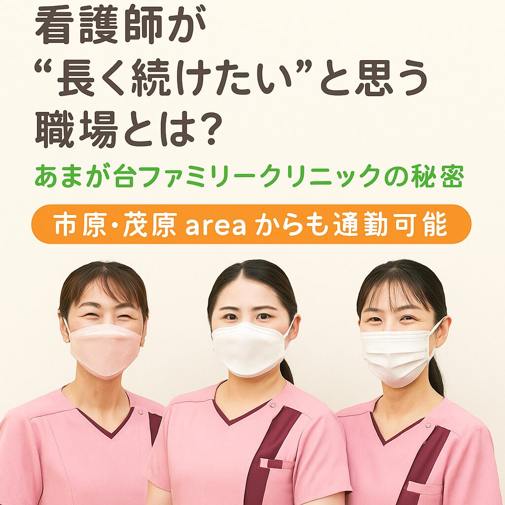 月1回の外部コンサルタントによる勉強会と、看護師一人ひとりの目標をサポートする仕組みで、ブランク明けも安心して働ける環境を実現。千葉・茂原エリアからも通勤可能な、あまが台ファミリークリニックの看護師支援体制をご紹介します。