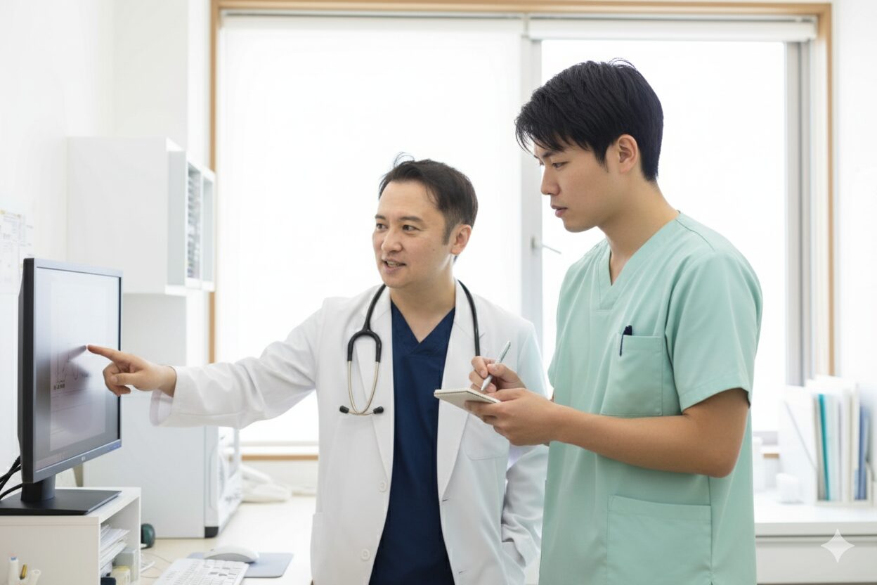 もちろん、本や動画で勉強することも大切ですが、指導者から直接学び、実際にクリニックに来院されるよくある病気(かぜ、腹痛、胸の痛み、高血圧、糖尿病など)の診断、治療をどうしたらいいか?頭に汗をかきながら勉強するのが一番です。