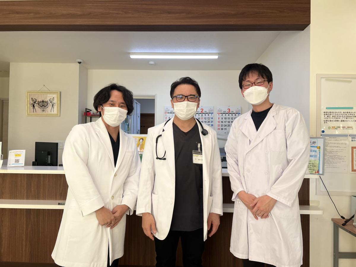 現在研修している医師(左から岩堀医師、院長、佐藤医師)