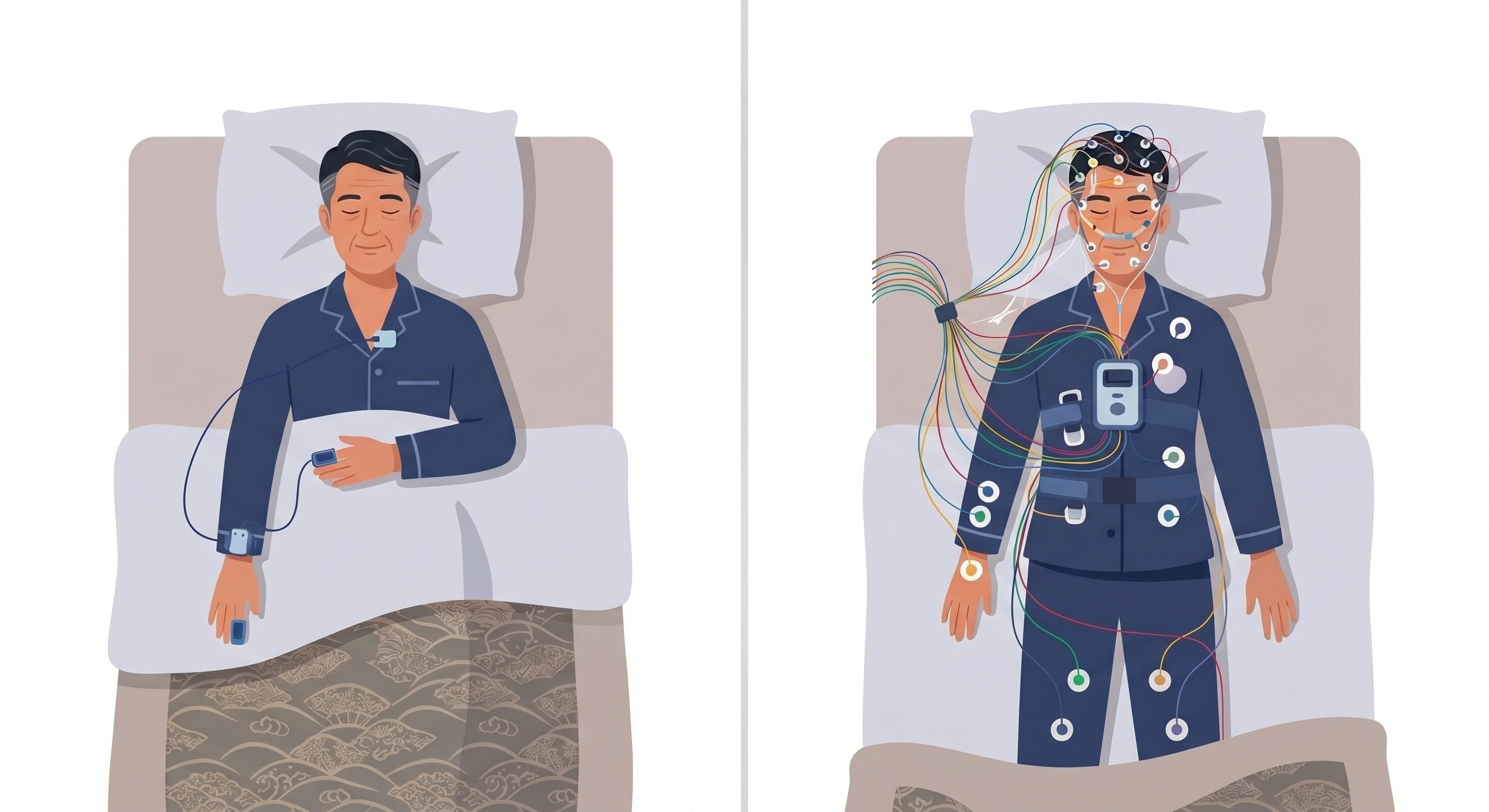 指先に血中酸素濃度を測るセンサーをつけ、鼻に呼吸を確認するチューブを装着して、いつものように一晩寝るだけです。