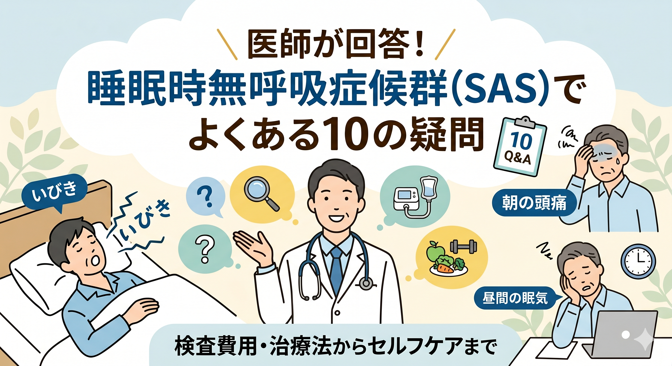 この記事では、皆さまの不安を少しでも解消できるよう、当院に寄せられる「SASに関するよくある10の疑問」にわかりやすくお答えします。