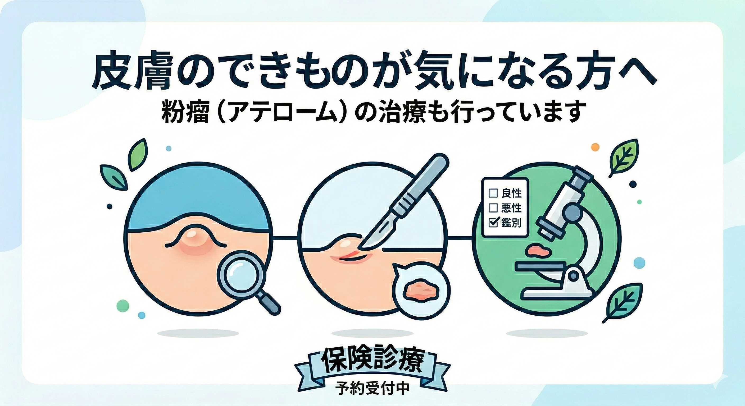 当院の皮膚科では、保険医療で皮膚のできものを切除する手術を行なっています。