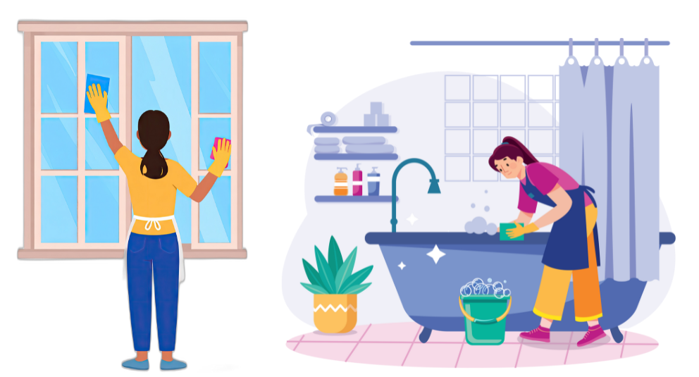 •浴槽を洗う時は、上から下へ、右から左へ腕を伸ばすようにする